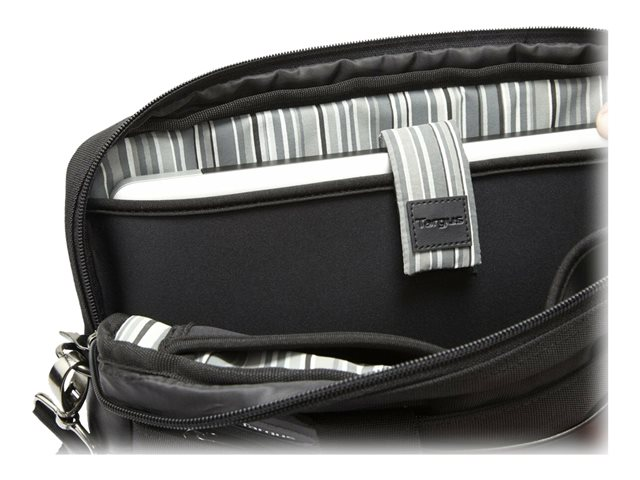 Transportez et protégez votre ordinateur portable de 13,3" dans cette mallette fine et élégante ornée d'accents en simili cuir et d'une doublure protectrice à rayures. Protégez votre ordinateur portable dans une poche matelassée et ajustée, dotée d'une sangle de sécurité pour limiter le mouvement des ordinateurs portables. Une autre poche similaire vous permet de protéger également votre iPad ou votre tablette. Les poignées de transport et la bandoulière matelassées vous assurent un transport confortable.