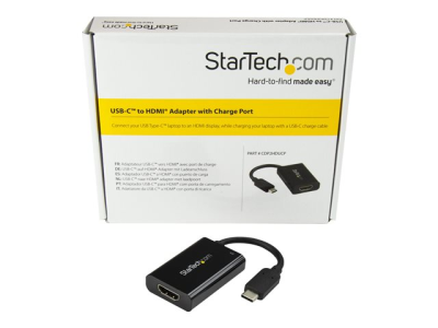 StarTech.com USB C to HDMI 2.0 Adapter with Power Delivery, 4K 60Hz USB Type-C to HDMI Display/Monitor Video Converter, 60W PD Pass-Through Charging Port, Thunderbolt 3 Compatible, Black - USB-C Display Adapter (CDP2HDUCP) - Adaptateur vidéo - 24 pin USB-C mâle pour HDMI, USB-C (alimentation uniquement) femelle - noir - USB Power Delivery (60W), support 4K60Hz (4096 x 2160)