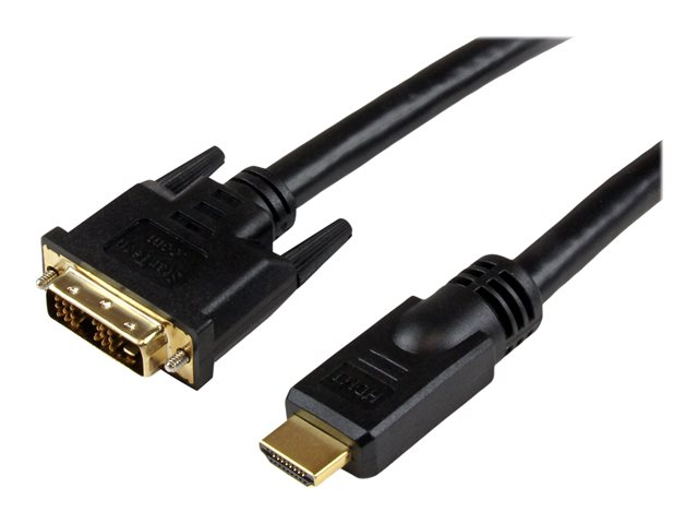 Le câble HDMI -DVI-D de 10 mètres HDDVIMM10M vous permet de raccorder une carte vidéo DVI-D (ou un autre appareil à sortie DVI-D) à un écran doté de la technologie HDMI. Le câble prend en charge un fonctionnement bidirectionnel qui permet également une configuration inversée, fournissant un signal vidéo numérique à partir d'une sortie HDMI et l'envoyant vers un écran compatible DVI-D.