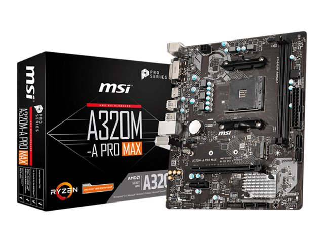 MSI A320M-A PRO MAX - Carte-mère - Socket AM4 - AMD A320 Chipset - USB 3.1 Gen 1 - Gigabit LAN - carte graphique embarquée (unité centrale requise) - audio HD (8 canaux) A320M-A PRO MAX