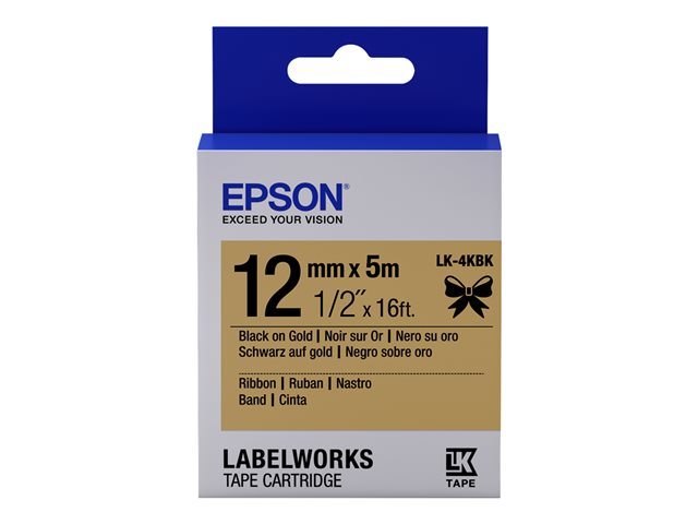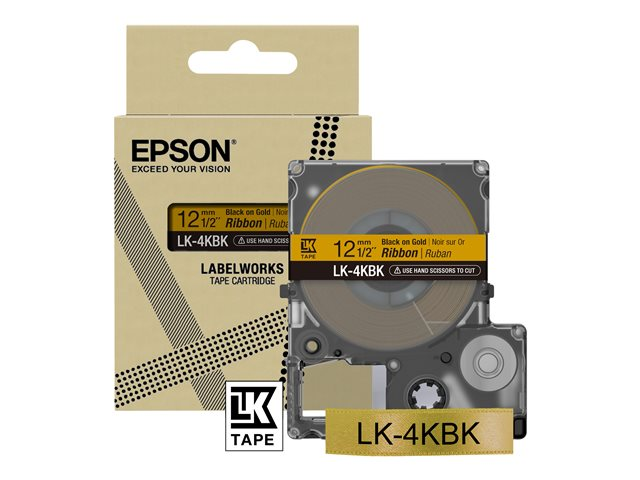 Epson LabelWorks LK-4KBK - Noir sur or - Rouleau (1,2 cm x 5 m) 1 cassette(s) bande d'étiquettes - pour LabelWorks LW-1000, 300, 400, 600, 700, 900, K400, Z5000, Z5010, Z700, Z710, Z900 C53S654001