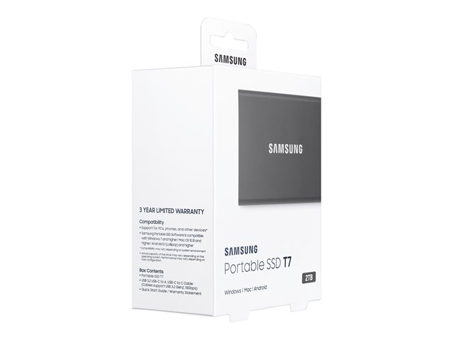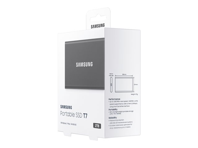 Samsung T7 MU-PC2T0T - SSD - chiffré - 2 To - externe (portable) - USB 3.2 Gen 2 (USB-C connecteur) - AES 256 bits - gris titan MU-PC2T0T/WW