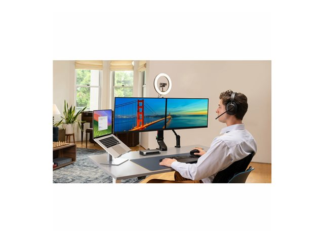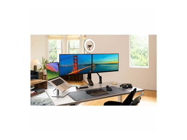 Le rehausseur universel pour ordinateur portable vous permet de surélever votre ordinateur portable à une hauteur de vision optimale, tout en réduisant l'encombrement sur le bureau. Fabriqué en aluminium et en acier résistant, ce rehausseur robuste pour ordinateur portable accepte tout ordinateur portable dont l'écran mesure jusqu'à 16'' et pesant jusqu'à 8 kg. Grâce au design à réglage progressif, vous n'avez pas besoin d'outil pour régler la hauteur entre 151 et 200 mm et l'angle d'inclinaison entre 0 et 45°. La conception ouverte du rehausseur améliore la circulation de l'air et le refroidissement de l'appareil, tandis que le vaste espace en dessous vous permet de ranger des accessoires. Les coussinets antidérapants en silicone protègent l'appareil des rayures et le maintiennent en place.