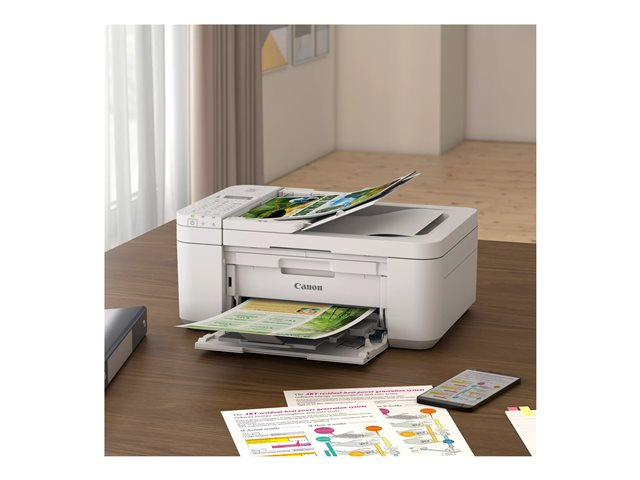 La Canon PIXMA TR4751i imprime, numérise, copie et télécopie : parfaite pour votre bureau à domicile. Installez-la rapidement avec l'application pour smartphone. Contrôlez-la depuis un smartphone/une tablette grâce au Wi-Fi et à l'application Canon PRINT. L'impression sans application avec Mopria et Apple AirPrint est intégrée. L'encre noire pigmentée et les encres colorées offrent des textes nets, images éclatantes et impressions de qualité. Les fonctionnalités conviviales comprennent : cartouches d'encre remplaçables, chargement du papier optimisé, impression recto verso automatique et CAD 20 feuilles pour copier/numériser des documents de plusieurs pages. Le rappel de retrait de documents permet de ne jamais oublier les documents sensibles que vous avez copiés/numérisés.