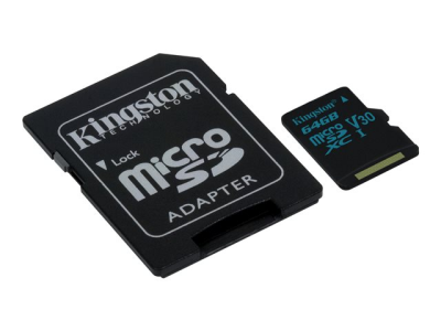 Kingston Canvas Go! - Carte mémoire flash (adaptateur microSDXC vers SD inclus(e)) - 64 Go - Video Class V30 / UHS-I U3 / Class10 - microSDXC UHS-I