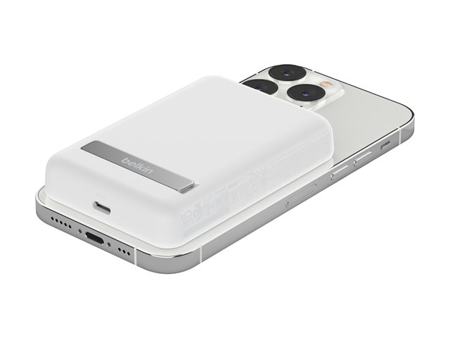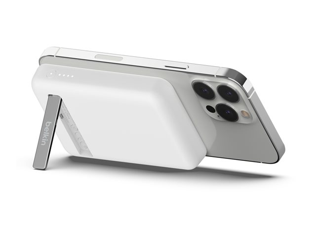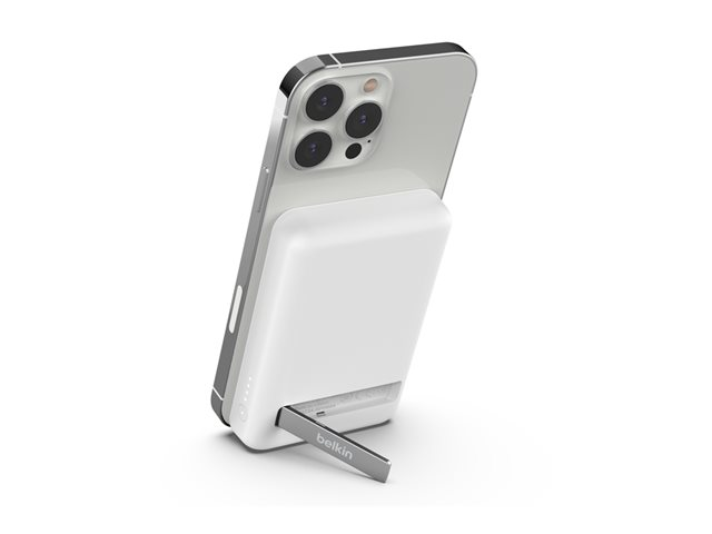 Cette banque d'alimentation sans fil magnétique portable 5K + support délivre une puissance de charge sans fil de 7,5 W à votre appareil, sans câble ni besoin de le connecter à une source d'alimentation. Le support pliable offre un moyen pratique et mains libres de diffuser des flux ou de passer des appels vidéo pendant que vous chargez.