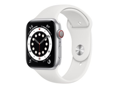Apple Watch Series 6 (GPS + Cellular) - 44 mm - aluminium argenté - montre intelligente avec bande sport - fluoroélastomère - blanc - taille du bracelet : S/M/L - 32 Go - Wi-Fi, Bluetooth - 4G - 36.5 g MG2C3NF/A