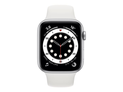 Apple Watch Series 6 (GPS) - 44 mm - aluminium argenté - montre intelligente avec bande sport - fluoroélastomère - blanc - taille du bracelet : S/M/L - 32 Go - Wi-Fi, Bluetooth - 36.5 g