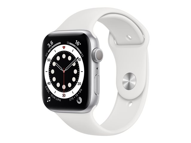 Apple Watch Series 6 (GPS) - 44 mm - aluminium argenté - montre intelligente avec bande sport - fluoroélastomère - blanc - taille du bracelet : S/M/L - 32 Go - Wi-Fi, Bluetooth - 36.5 g M00D3NF/A