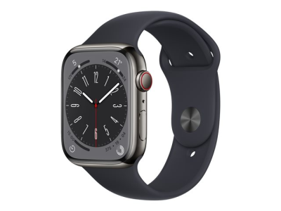 Apple Watch Series 8 (GPS + Cellular) - 45 mm - acier inoxydable graphite - montre intelligente avec bande sport - taille du bracelet : Normal - 32 Go - Wi-Fi, LTE, Bluetooth, UWB - 4G - 51.5 g MNKU3NF/A