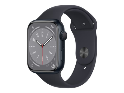 Apple Watch Series 8 (GPS) - 45 mm - aluminium minuit - montre intelligente avec bande sport - fluoroélastomère - minuit - taille du bracelet : Normal - 32 Go - Wi-Fi, Bluetooth - 38.8 g