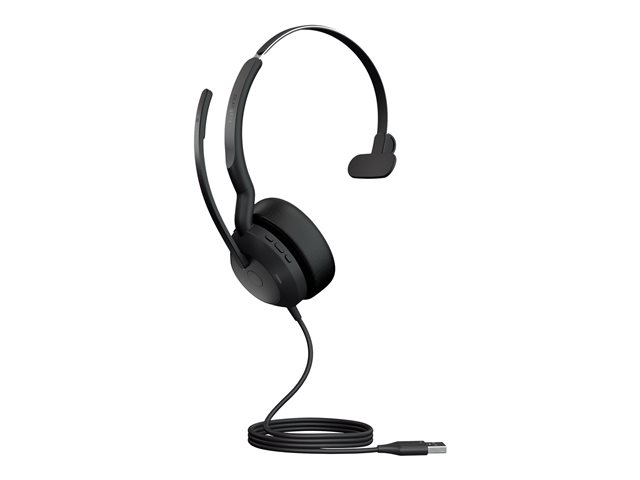 Jabra Evolve2 50 UC Mono - Micro-casque - sur-oreille - Bluetooth - filaire - Suppresseur de bruit actif - USB-A - noir - certifié Zoom, Certifié pour Microsoft Teams, Cisco Webex Certified, Certifié Alcatel-Lucent, Certifié Unify, Certifié Google Meet, Certifié Amazon Chime