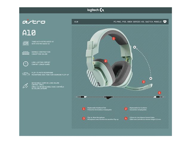 ASTRO Gaming A10 Gen 2 - Micro-casque - circum-aural - filaire - jack 3,5mm - menthe 939-002085