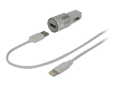 MCL Samar - Adaptateur d'alimentation pour voiture - 2.4 A (USB) - sur le câble : Lightning