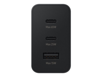 Samsung EP-T6530 - Adaptateur secteur - 65 Watt - 3 A - PD 3.0, SFC 2.0 - 3 connecteurs de sortie (USB, 2 x USB-C) - noir