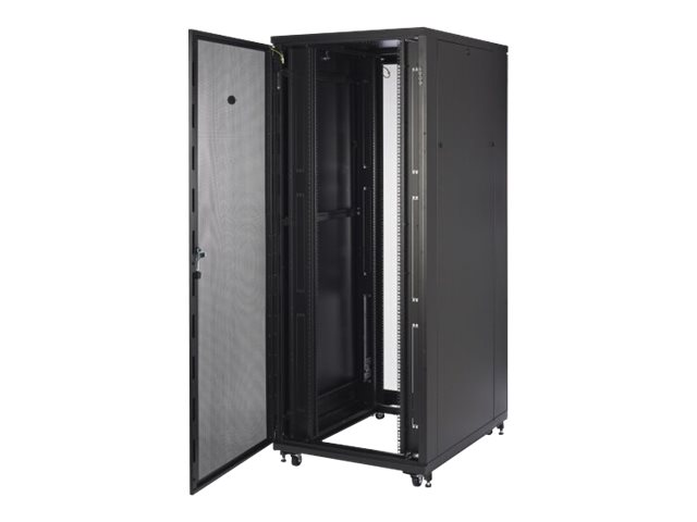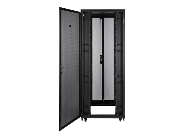 Armoire informatique universelle large et profonde avec largeur accrue pour offrir davantage d'options de gestion de câble dans les applications de serveur et de mise en réseau plus denses. Inclut des espaces de montage 1U verticaux et intégrés adjacents aux espaces U de montage d'équipement EIA-310 standard d'armoires qui peuvent être retirés et remplacés par des accessoires 1U. Les armoires sont profondes pour procurer un espace supplémentaire ou davantage d'espace ouvert et ainsi faciliter accès à l'arrière de l'armoire. Hauteur 42U pour passer facilement les portes.