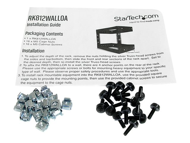 StarTech.com Rack à Cadre Ouvert Noir 8 U - Rack Fixation Murale - Profondeur Réglable - Rack - montable sur mur - noir - 8U - 20" RK812WALLOA
