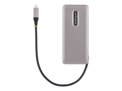 Ce hub USB-C à 4 ports avec passage USB Power Delivery (PD) en option, étend la connectivité d'un ordinateur portable USB-C. Ce hub dispose de quatre ports USB 3.2 Gen 2 (10Gbps) Type-C, qui prennent en charge les périphériques USB à large bande passante. Connectez le câble USB-C attaché à un port USB Type-C ou Thunderbolt 3/4, situé sur l'ordinateur hôte, pour permettre la connexion rapide de jusqu'à 4 périphériques. Ce hub USB-C léger peut fonctionner avec une alimentation par bus. Vous pouvez également connecter un adaptateur d'alimentation USB-C (non inclus) au port USB-C PD désigné pour charger un ordinateur portable.